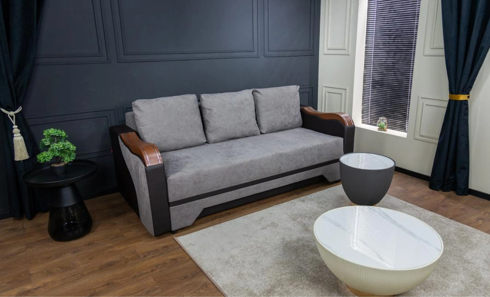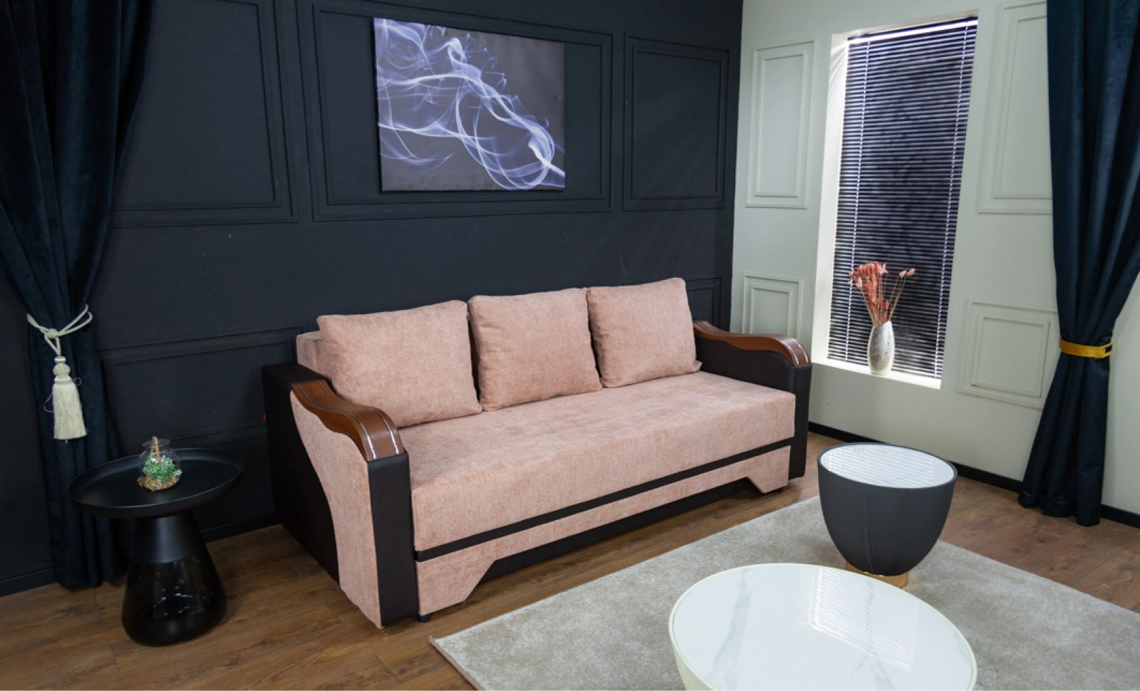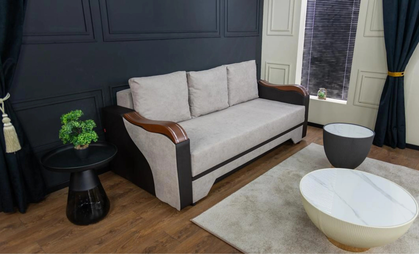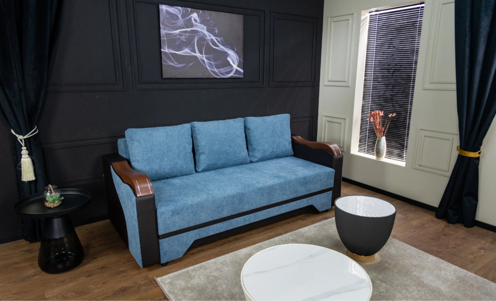 Îmbină stilul cu utilitatea prin faptul că este prevăzută cu ladă pentru depozitarea lenjeriei, a pernelor sau a păturii și pentru a păstra la îndemână toate articolele frecvent utilizate. Canapeaua oferă un confort sporit prin cele 3 perne detașabile și se transformă rapid și ușor într-un pat spațios de 190 x 165 cm, atunci când scoți pernele și tragi șezutul în exterior, coborând spătarul.