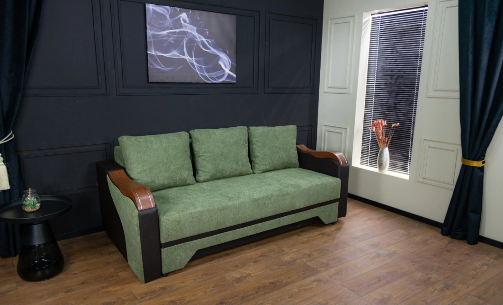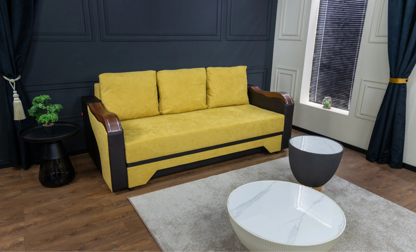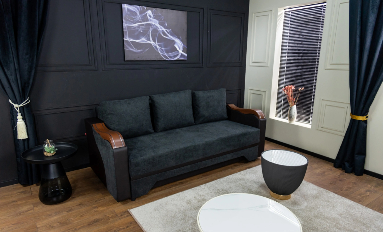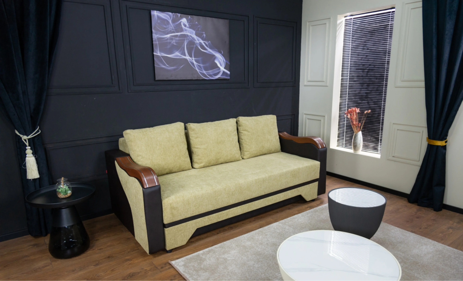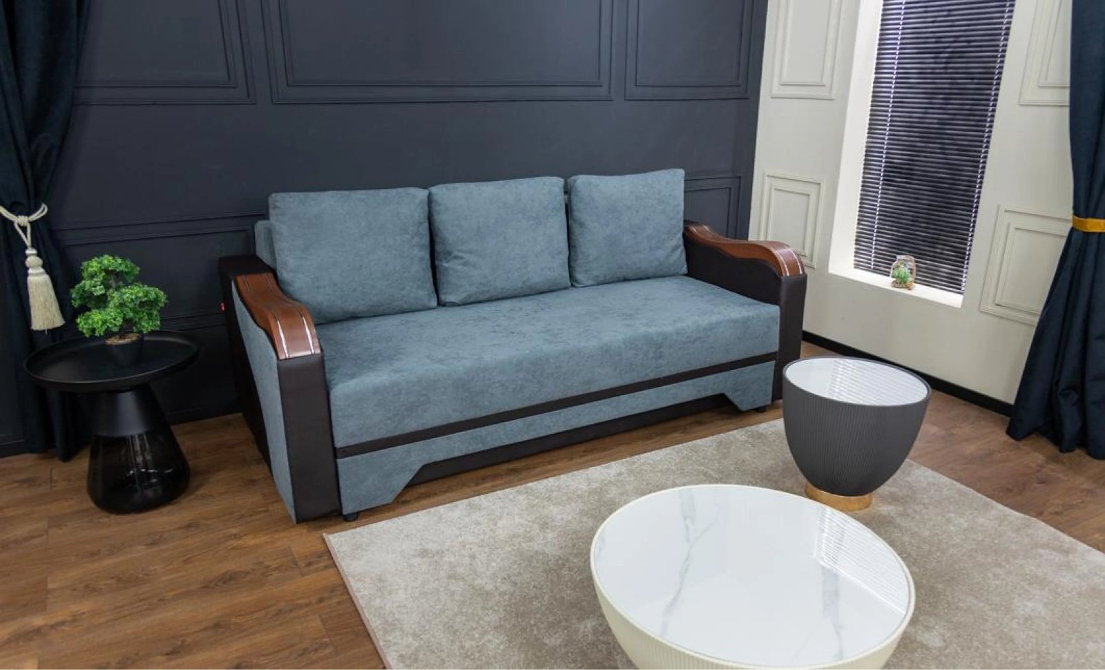 Îmbină stilul cu utilitatea prin faptul că este prevăzută cu ladă pentru depozitarea lenjeriei, a pernelor sau a păturii și pentru a păstra la îndemână toate articolele frecvent utilizate. Canapeaua oferă un confort sporit prin cele 3 perne detașabile și se transformă rapid și ușor într-un pat spațios de 190 x 165 cm, atunci când scoți pernele și tragi șezutul în exterior, coborând spătarul.
