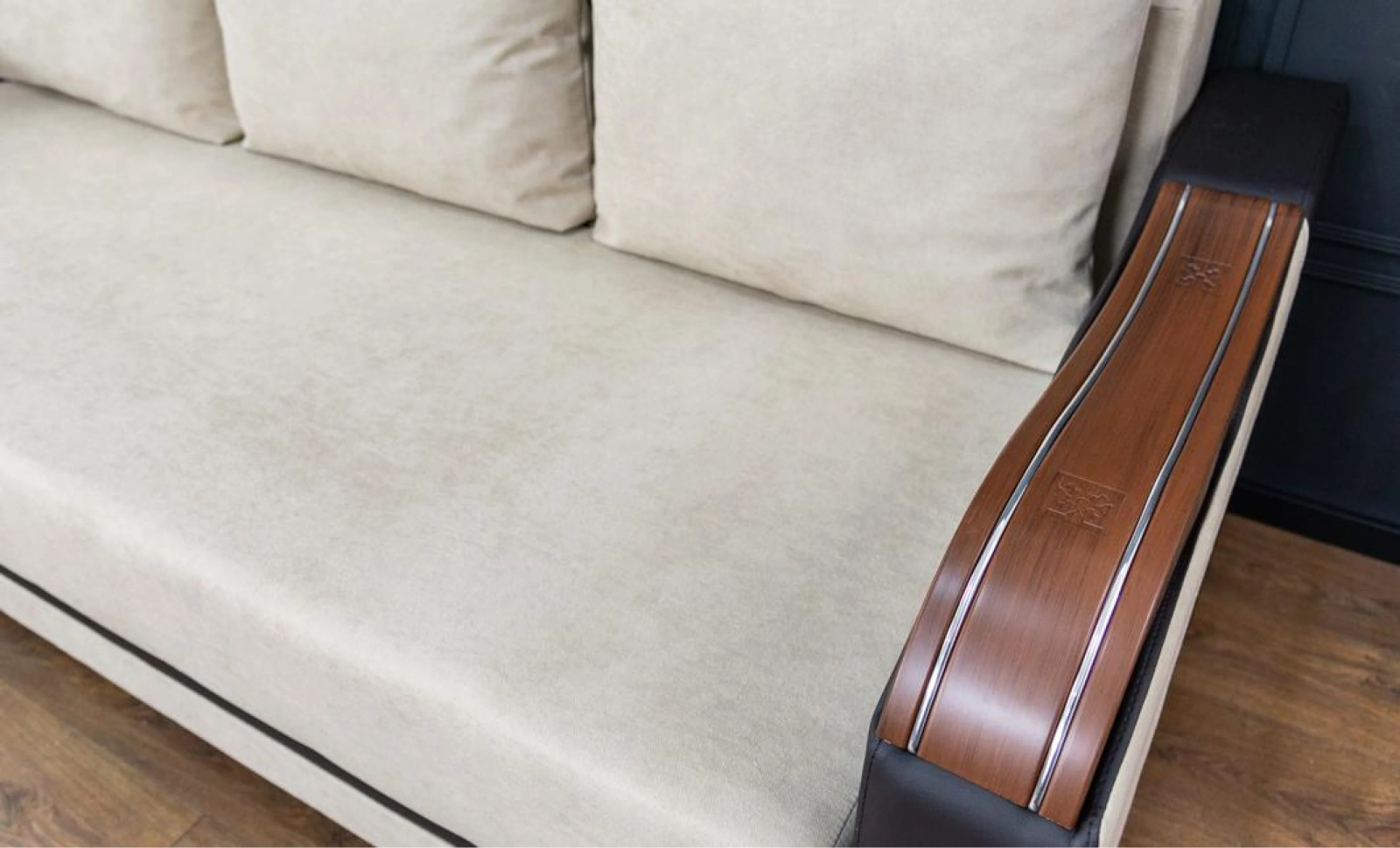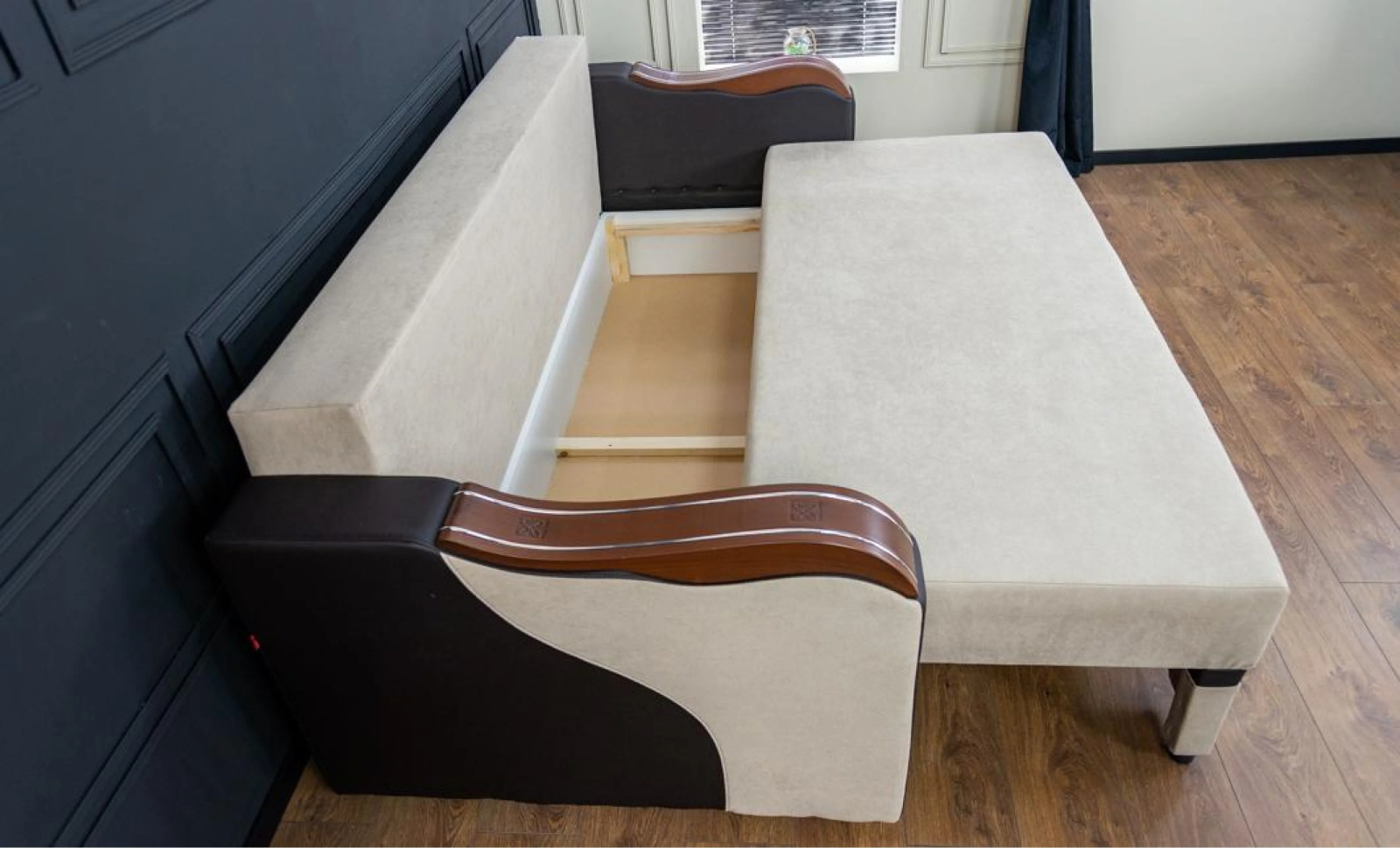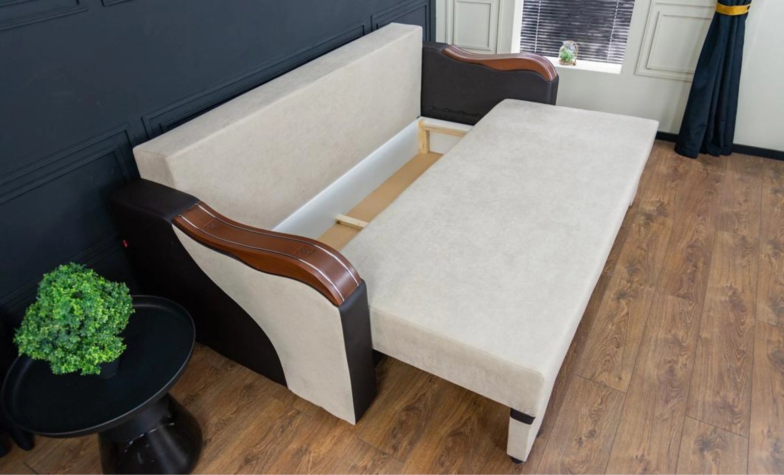 Șezutul și extensia canapelei sunt pe relaxa (arcuri elicoidale și poliuretan). Scheletul este rezistent, realizat pe structură solidă de brad și pal.