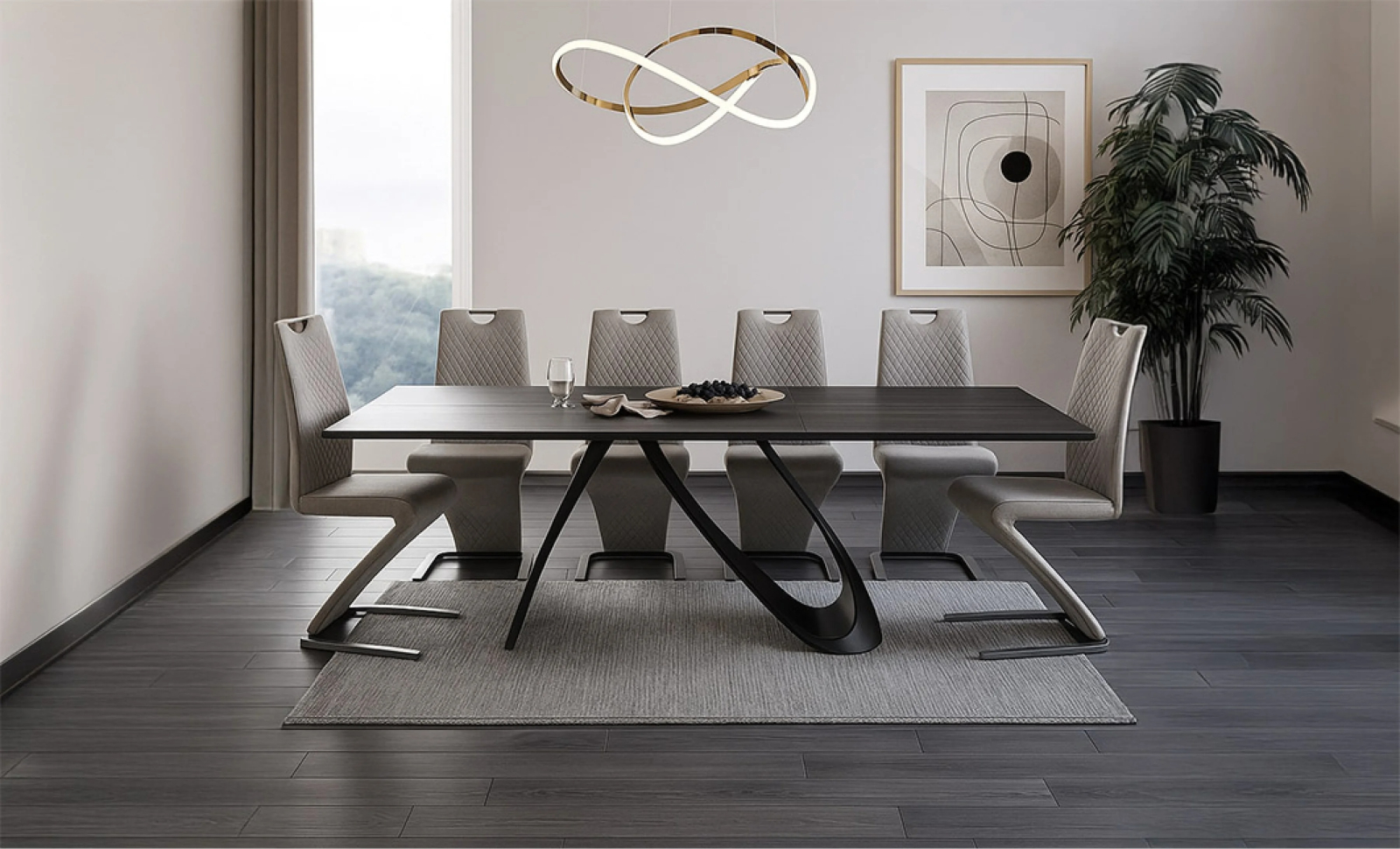 Masa extensibilă cu blat ceramic, este o alegere rafinată pentru cei care apreciază un design modern și funcțional. Această piesă de mobilier se remarcă prin eleganța și versatilitatea sa, fiind potrivită atât pentru living, cât și pentru dining. Blatul combină sticla securizată cu ceramica Ossido Bruno, oferind un aspect sofisticat și o durabilitate excepțională. Cadrul metalic, finisat în nuanțe de maro și negru mat, asigură stabilitate și completează armonios designul modern al mesei. Dimensiunile de 160 cm lungime, 90 cm adâncime și 76 cm înaltime, sunt perfecte pentru spații compacte, dar permite extinderea până la 240 cm, transformând masa într-un element central, ideal pentru cine festive, întâlniri de familie sau alte evenimente speciale. Aceasta îmbină perfect estetica modernă cu funcționalitatea, aducând un plus de stil și utilitate oricărui interior.