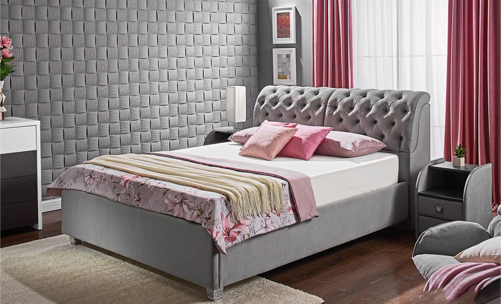 Transformă-ți dormitorul într-un spațiu sofisticat și primitor cu patul Frankfurt , o alegere inspirată pentru cei care preferă un design clasic, dar funcțional. Structura solidă oferă stabilitate și durabilitate pe termen lung iar stofa usor plusata ii confera o nota de eleganta.