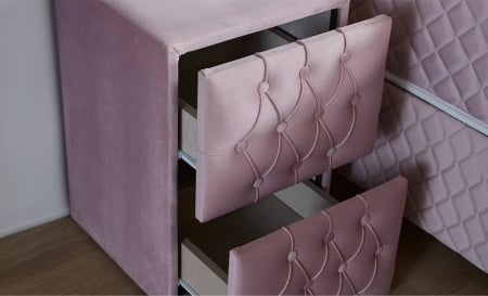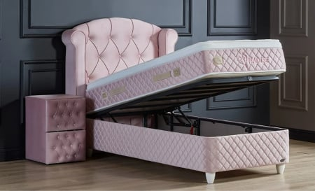 Unul dintre aspectele remarcabile ale patului Visco Lux Roz este spațiul generos de depozitare integrat. Cu o lădiță amplă sub somieră, accesibilă prin intermediul unei somiere rabatabile, acest pat oferă soluții inteligente pentru organizarea și păstrarea lucrurilor tale. Astfel, poți să profiți la maximum de fiecare colț al dormitorului tău, fără a compromite aspectul estetic sau confortul.