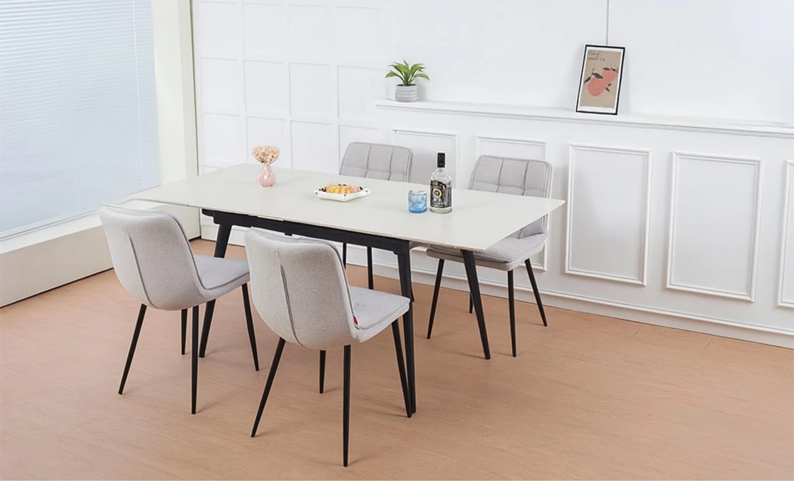 Setul de masă extensibilă R0101 cu 4 scaune R200 Bej aduce o combinație perfectă între eleganță, funcționalitate și confort. Masa, cu blat ceramic bej pe suport MDF, oferă un aspect modern și rafinat, fiind rezistentă la uzură și ușor de curățat. Mecanismul extensibil o transformă rapid într-o masă încăpătoare, ideală pentru întâlniri în familie sau seri cu prietenii.