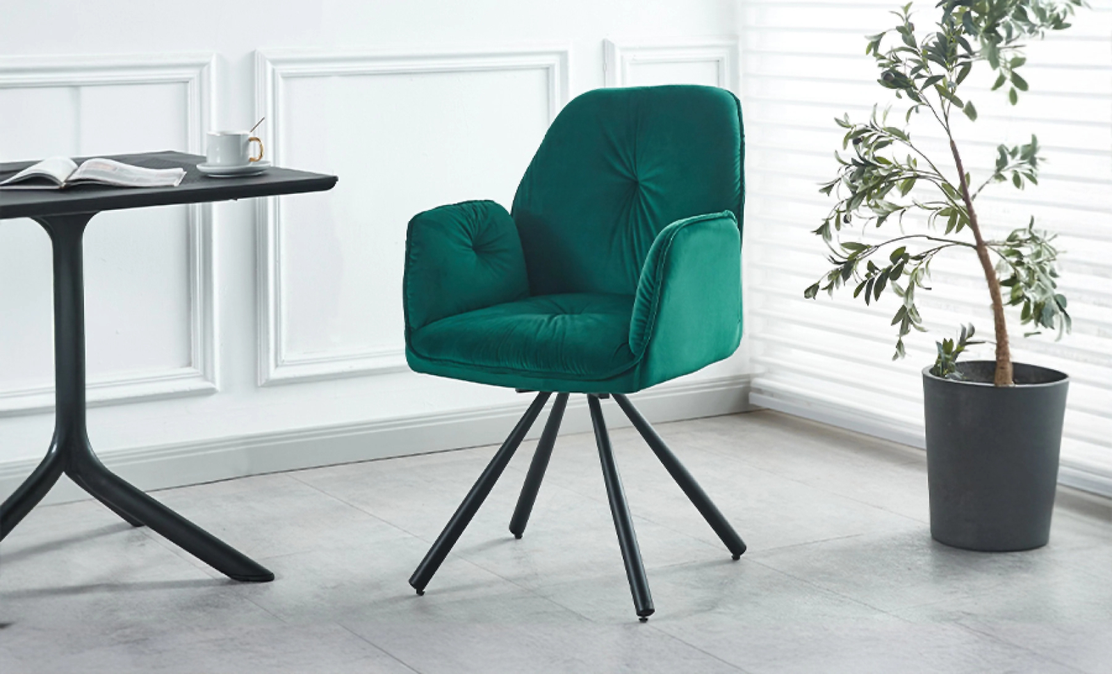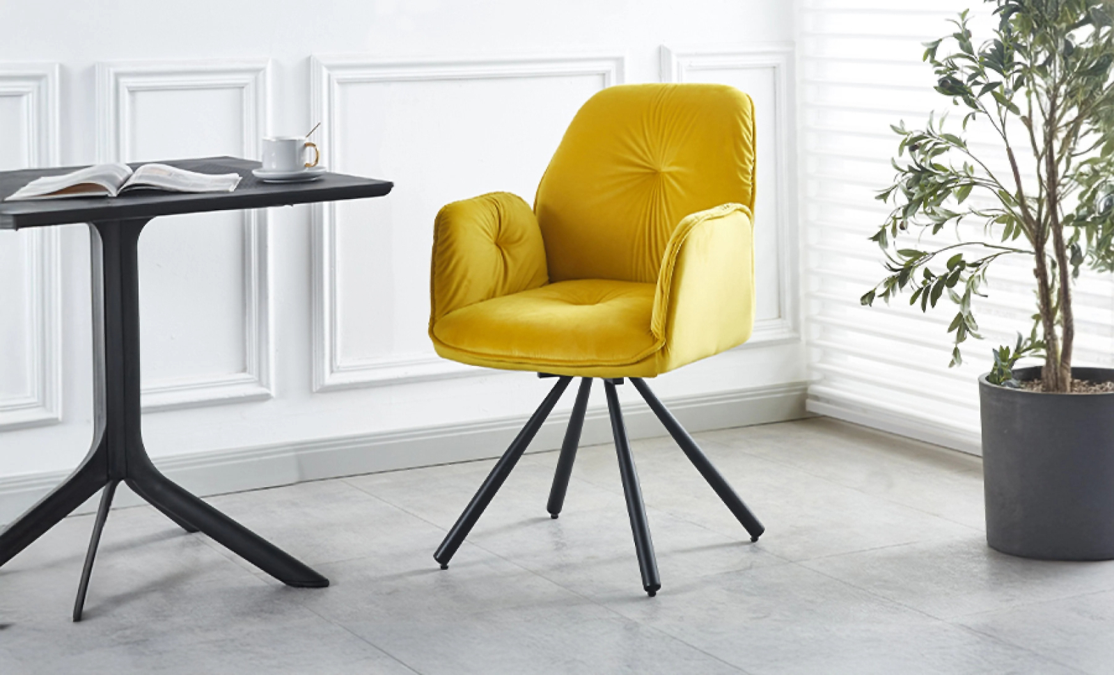 Scaunele KJC385 completează setul cu eleganța lor simplă și confortabilă. Tapiteria gri, moale și plăcută la atingere, se îmbină armonios cu picioarele solide metalice de culoare neagră, creând un aspect modern și echilibrat.